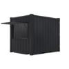Le conteneur Snack-Box 10 pieds ‘Dynamique’ est conçu sur la même base que la version “Authentique”. Il possède deux vantaux relevables d’une longueur d’1.50 mètres, qui offrent des ouvertures pratiques pour le service. Ces vantaux sont renforcés par un encadrement en acier et un rebord, et sont équipés de deux vérins. Enfin, ce modèle propose deux appuis-comptoirs en acier pour servir vos clients.